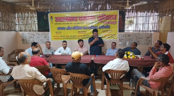 गोष्ठी के दौरान सभी वक्ताओं ने इस विषय की प्रासंगिकता को स्वीकार करते हुए इसे मौजूदा परिस्थिति के अनुकूल बताया।गोष्ठी की शुरुआत उत्तराखंड पत्रकार यूनियन के प्रदेश महासचिव हरीश जोशी ने की। उन्होंने प्रेस क्लब के पास एक रेस्टोरेंट में आयोजित गोष्ठी के दौरान कहा कि वर्तमान समय में आपदा के दौरान पत्रकारों की भूमिका काफी महत्वपूर्ण है। इस महत्वपूर्ण विषय पर विचार विमर्श काफी आवश्यक है। इससे न सिर्फ समाज को नई दिशा मिलेगी बल्कि ऐसे गोष्ठी से निकलने वाले विचारों से सरकार को अपनी नीतियां बनाने में भी सहूलियत मिलेगी। कार्यक्रम को संबोधित करते हुए वरिष्ठ पत्रकार गौरव गुलेरिया ने कहा कि सरकार को समय रहते चेत जाना चाहिए। अगर समय रहते नदियों के बीच में बाधा बन रहे निर्माण कार्य को नहीं रोका गया तो आने वाले समय में इसके और ज्यादा दुष्परिणाम देखने को मिलेंगे। .उन्होंने कहा कि नदी का रास्ता छोड़कर के ही प्रकृति आपदा से होने वाले नुकसान से बचा जा सकता है। प्रकृति अपने हिसाब से चीजों को नियंत्रित व व्यवस्थित करती है। अवैध निमार्ण जैसे कदमों से उसमें बाधा उत्पन्न करने के कारण नुकसान ज्यादा होता है।वरिष्ठ पत्रकार तथा उत्तराखंड पत्रकार यूनियन के सदस्य योगेश रतूड़ी ने आपदा के दौरान होने वाले कवरेज के जोखिम के बारे में जानकारी दी। उन्होंने अपने अनुभव साझा करते हुए कहा कि कई बार आपदा के दौरान कवरेज करने के लिए गांव में जाना पड़ता है। उन्हें हमेशा इस बात की चिंता सताती रहती है कि गांव में आगे बढ़ने के बाद पीछे वाली रोड क्षतिग्रस्त ना हो जाए जिससे उनका वापस आना मुश्किल हो जाए। उन्होंने इस तरह की चुनौतियों पर ध्यान आकर्षित करते हुए कहा कि पत्रकारों को आपदा के दौरान कवरेज करते समय अपनी सुरक्षा का भी विशेष ध्यान रखना चाहिए।