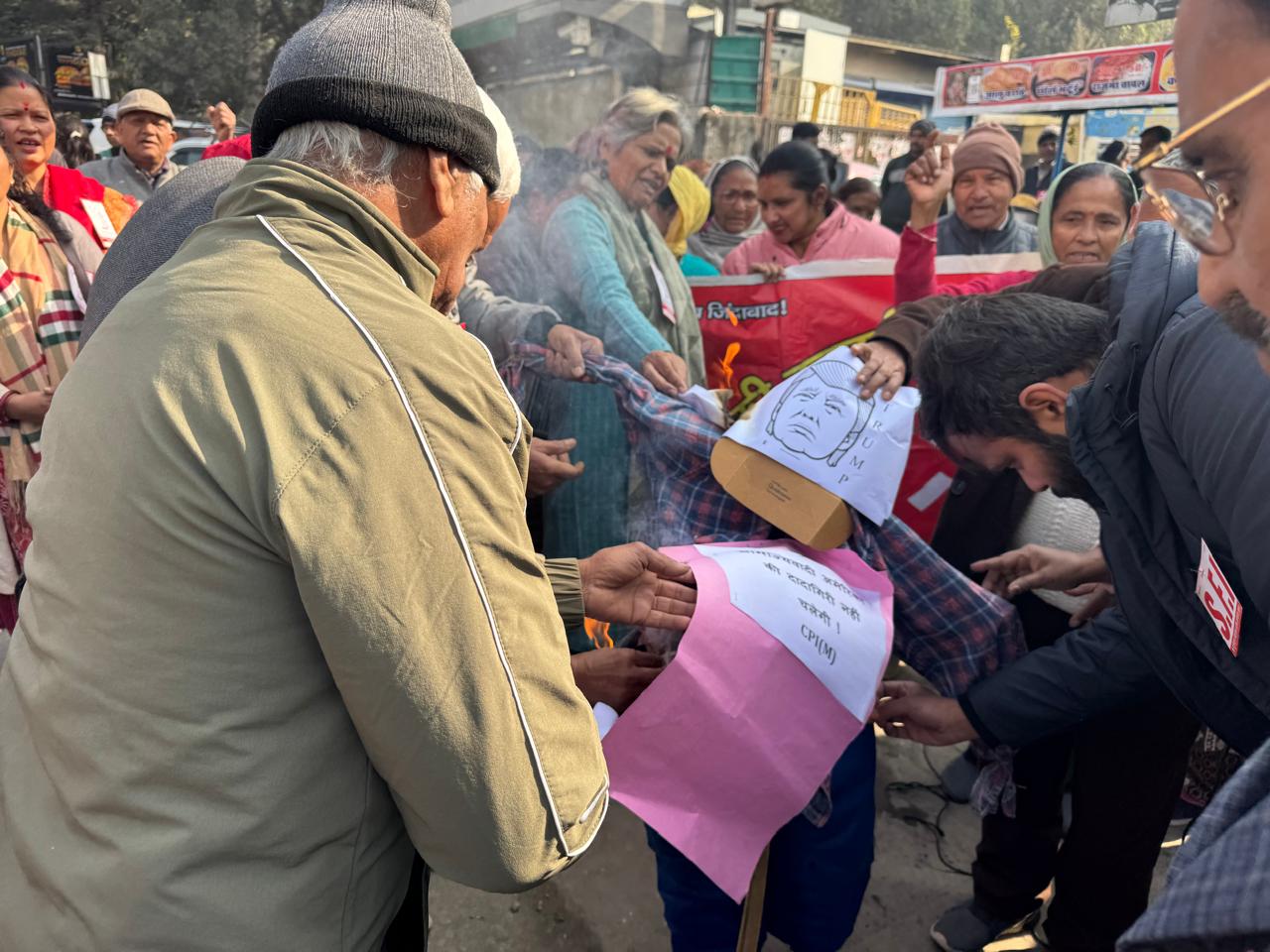 देहरादून- अमेरिका की साम्राज्यवादी नीतियों एवं बढ़ती गुण्डागर्दी के खिलाफ तथा बेनेजुयला अमेरिका द्वारा सम्प्रभुता पर अतिक्रमण के खिलाफ तथा राष्ट्रपति निकोलस मदोरई कि अवैध गिरफ्तारी के विरोध में आज देशव्यापी विरोध कार्यवाही के बीच मार्क्सवादी कम्युनिस्ट पार्टी ने जलूस निकाला तथा अमेरिकी साम्राज्यवादी नीतियों का जोरदार विरोध किया तथा राजपुर रोड़ पहुंचकर डोनाल्ड ट्रंप का पुतला दहन किया तथा साम्राज्यवादी नीतियों के खिलाफ जोरदार नारेबाजी की ।